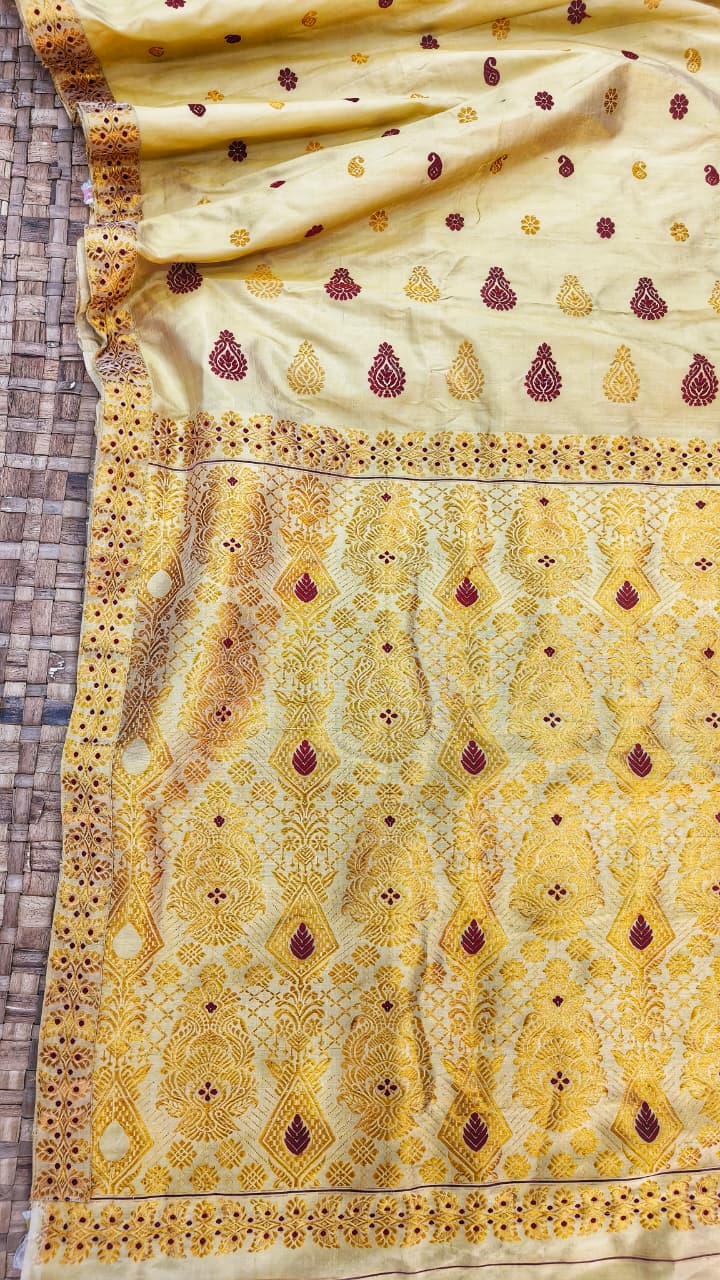 Beige Pure Mulberry With Color Zari Assam Silk Saree