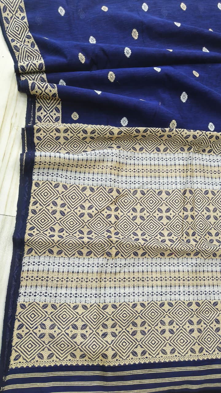 Black Eri Silk Saree With Interwoven Border