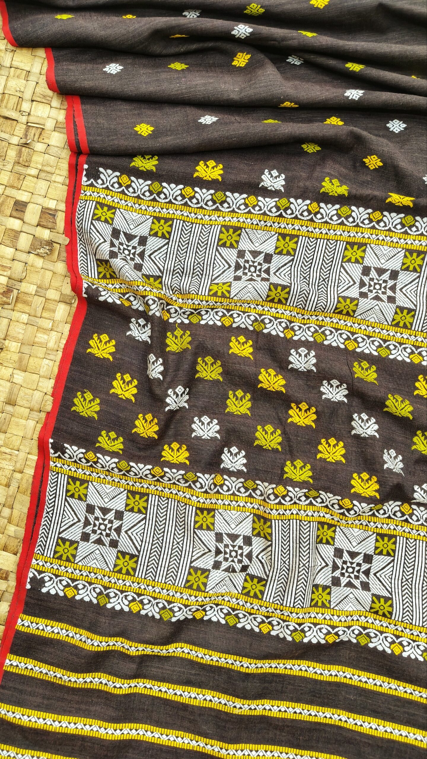 Black Eri Silk Saree With Interwoven Border