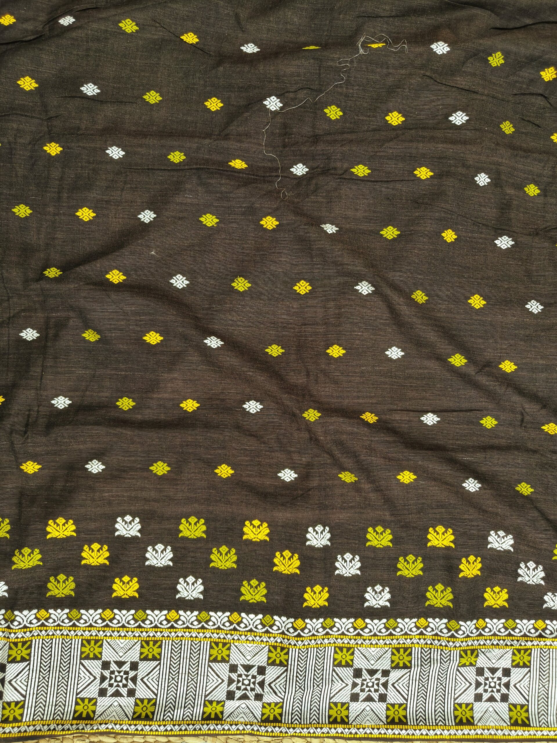 Yellow Eri Mulberry Saree with White Motifs