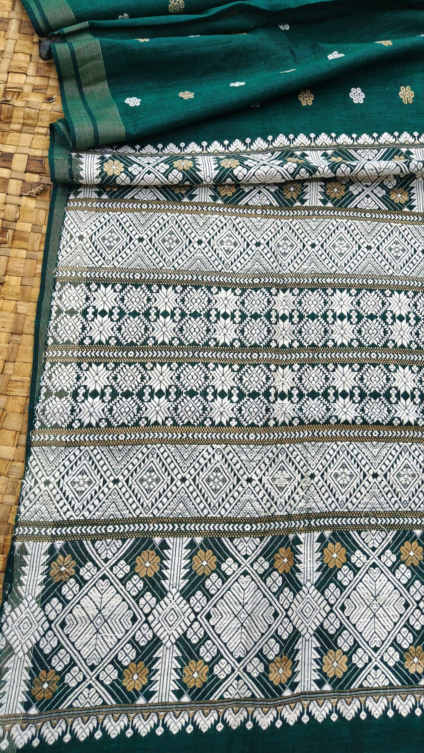 Coffee Eri By Eri Silk Thread Work Saree With Designer Blouse Assam Silk Saree