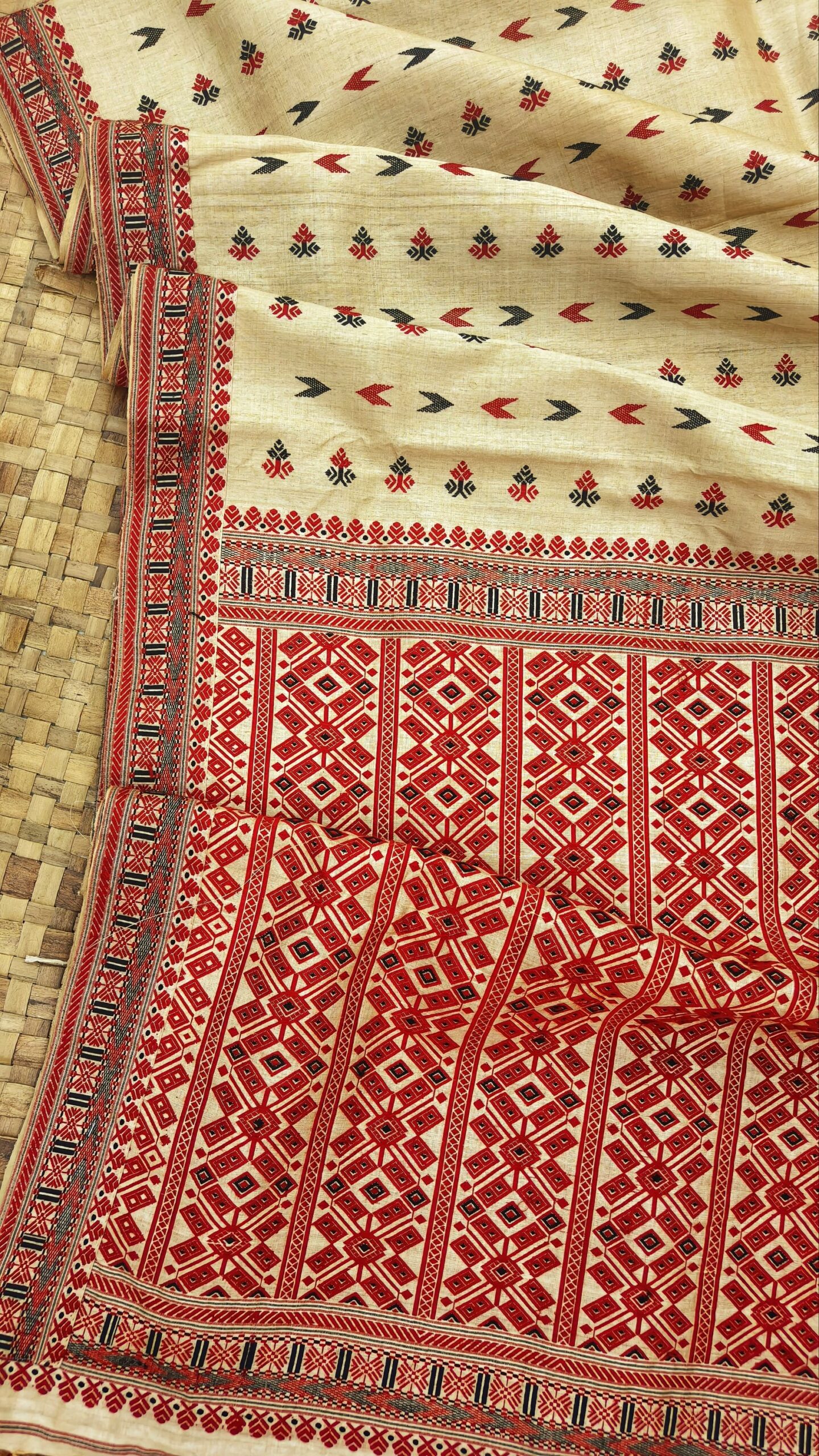 Pure Tussar By Mulberry Thread Work Assam Silk Saree with Multicolour Motifs