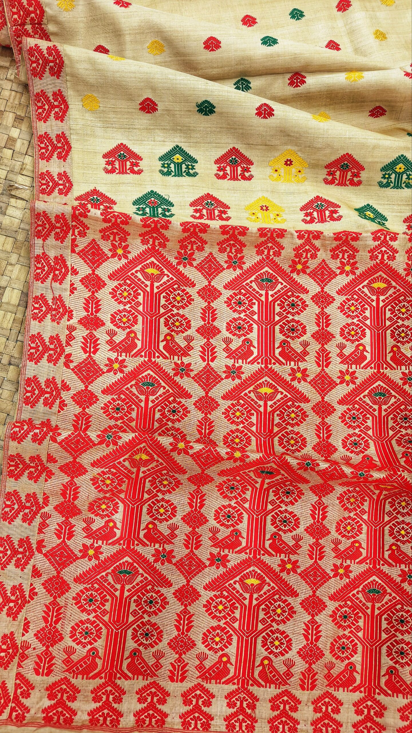 Pure Tussar By Tussar Silk Thread Work Assam Silk Saree with Pink And White Motifs