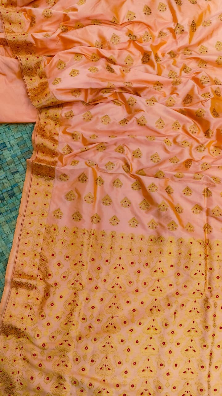 Rosy Pink Pure Mulberry WITH Golden Zari Assam Silk Saree