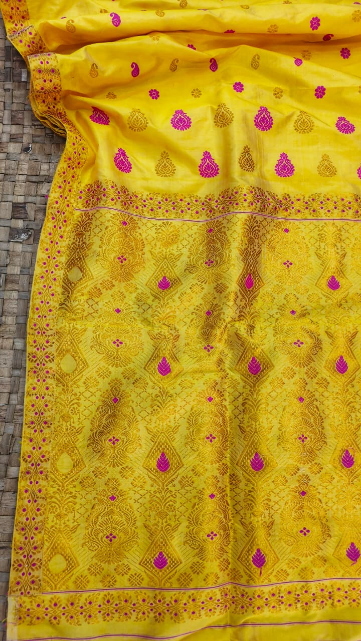 Yellow Pure Mulberry With Color Zari Assam Silk Saree